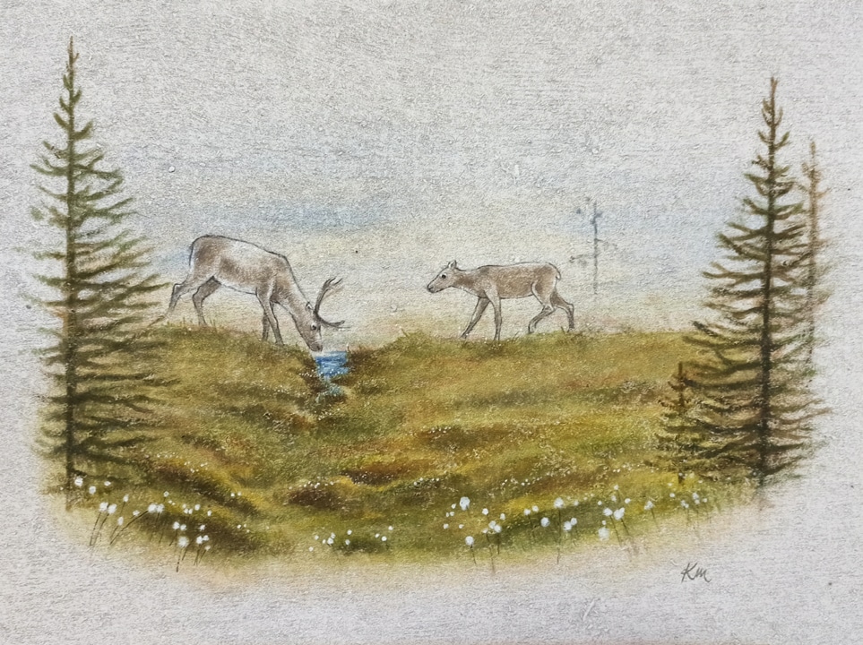 Akryylimaalaus Konto-akustiikkalevylle ”Lähteellä”